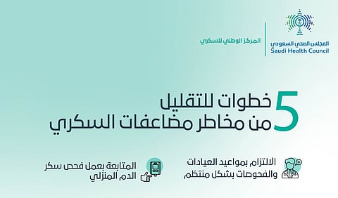 وجّه المجلس الصحي السعودي، ممثلاً بالمركز الوطني للسكري، خمس خطوات للتقليل من مخاطر مضاعفات السكري.