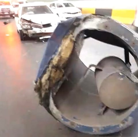 نجا شاب من موت محقق بفضل الله؛ وذلك بعد أن سقطت فوق مركبته إحدى المراوح الضخمة في أحد أنفاق مكة المكرمة، ونجا بأعجوبة منها، لكن تضررت مركبته.