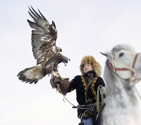 حافظ الشعب الكازاخستاني أو شعب الكازاخ في منطقة التاي في غرب منغوليا على ممارسة التقاليد القديمة الخاصة بهم وعمرها 4000 عام بما في ذلك الصيد مع النسور.