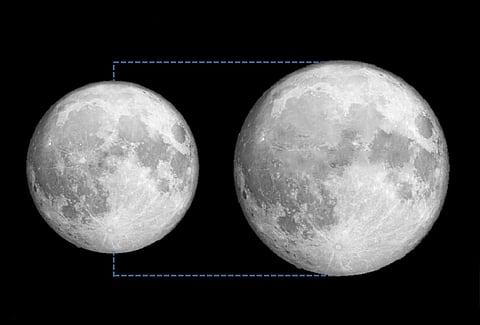 وأضاف: يطلق وصف العملاق على القمر سواء كان في المحاق أو البدر عندما تكون المسافة بين مركز الأرض ومركز القمر ضمن 362,146 كيلو متراً، والتسمية العلمية لهذا الحدث قمر الحضيض ويقصد بذلك وقوع القمر في أقرب نقطة من الأرض.