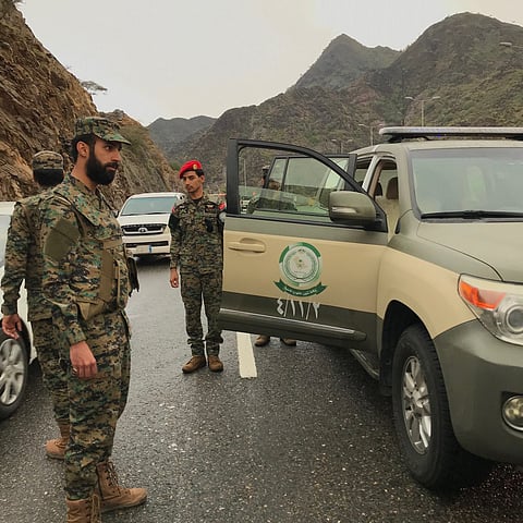 تنتشر الفرق الميدانية الراجلة لقوات الأفواج الأمنية في جبال محافظة الداير بني مالك شرقي منطقة جازان متنقلين بين طرقات وعرة على أقدامهم لاستهداف المتسللين والمهربين الذين يسلكون هذه الطرق الوعرة جدًا.. وبالرغم من وعورتها إلا أن فرق الأفواج الأمنية نجحت في عبور كل الطرقات سيرًا على الأقدام، وعبر المركبات العسكرية.