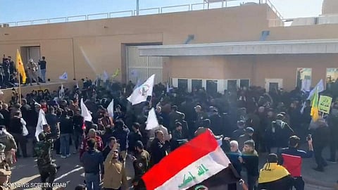 ووفق "سكاي نيوز" كان مناصرون للمليشيات قد بدأوا بنصب خيام اعتصام لهم أمام بوابة السفارة الأمريكية في العاصمة العراقية، الثلاثاء.