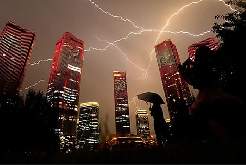 8- خيوط البرق تتقاطع في سماء بكين عاصمة الصين