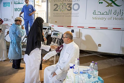 وأوضح المدير العام لصحة الجوف فارس بن مخيلف الرويلي أنه يوجد عدد من عربات العيادات المتنقّلة المجهزة بالطواقم الطبية لتقديم الرعاية والعناية الصحية للحجاج وبمختلف التخصصات على مدار الساعة، كما جُهِّزت العيادات بأجهزة فحص العلامات الحيوية وقياس نسبة السكر بالدم، وجهاز تخطيط القلب والجهاز الخاص بالربو وجهاز الصدمات الكهربائي. كما يقدم المركز الخدمات العلاجية بتوفير الأدوية لجميع الحجاج المراجعين للمركز.
