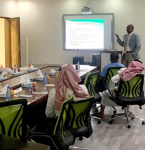 وتناولت الورشة كيفية الوقاية من مرض السعار، والخطط المثلى للتصدي له، ومكافحة عدوى انتقال المرض من الحيوان إلى الإنسان، والطرق السليمة للتعامل معه؛ بما يعزز الصحة العامة بمدينة الطائف.