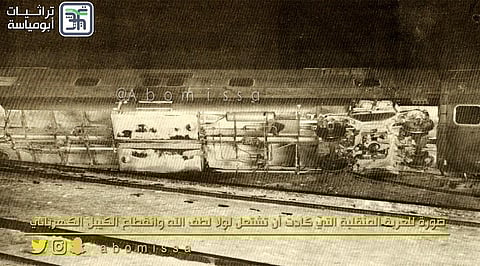 وأمام ذلك يروي الباحث في تاريخ المملكة، عبدالله العمراني، لـ"سبق" بالصور تفاصيل أقدم الحوادث التي تَعَرّض لها هذا القطار، والتي وقعت في مساء يوم الأحد الموافق 22 شوال من عام 1401هـ؛ حيث قال: "انحرفت العربة رقم (8) من القطار المتجه من الرياض إلى الدمام، وانقلبت عربة أخرى تحمل عفش الركاب وعربة الديزل أيضاً، وقد وقع الحادث على بُعد كيلومتر واحد من محطة القطار بالرياض بعد مغادرته لها، ولم تقع أية إصابات في الأرواح ولا أضرار مادية تُذكر".