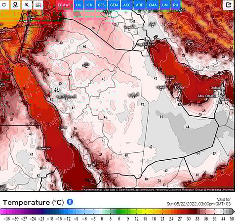 : قال الباحث في الطقس، عضو لجنة "تسميات" المناخية عبدالعزيز الحصيني: إنه بحسب مراصد الطقس؛ متوقع اليوم الأحد، أجواء من حارة إلى حارة جدًّا نهارًا تميل للحرارة أول الليل معتدلة فجرًا على المملكة والخليج.