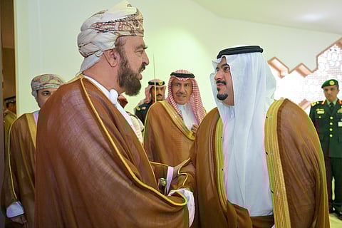 وكان في استقباله في مطار الملك خالد الدولي، صاحب السمو الملكي الأمير محمد بن عبدالرحمن بن عبدالعزيز نائب أمير منطقة الرياض، ومعالي الأمين العام لمجلس التعاون لدول الخليج العربية الأستاذ جاسم محمد البديوي، وصاحب السمو الأمير فيصل بن عبدالعزيز بن عيّاف أمين المنطقة، وسفير سلطنة عُمان لدى المملكة نجيب هلال البوسعيدي، وسفير خادم الحرمين الشريفين لدى سلطنة عُمان إبراهيم بن بيشان، ومدير شرطة منطقة الرياض المكلّف اللواء منصور بن ناصر العتيبي.
