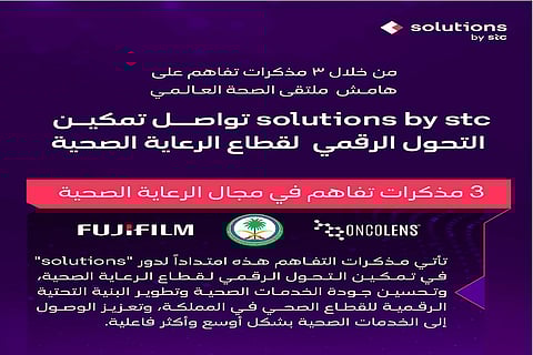جاء ذلك على هامش ملتقى الصحة العالمي، الذي أقيم في العاصمة الرياض، خلال الفترة 29 إلى 31 أكتوبر من العام الجاري، حيث وقعت solutions ثلاث مذكرات تفاهم في مجال الرعاية الصحية، كانت الأولى منها مع شركة مستشفى الملك فيصل التخصصي الدولية القابضة KFSHI، فيما كانت الثانية مع شركة OncoLens، في حين أن الثالثة جاءت مع شركة FujiFilm.
