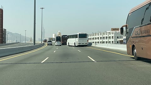 ووثقت "سبق" جانبًا من تواجد الحافلات على الكبرى حيث وصل العدد إلى 8 حافلات في وقت واحد وقد تحمل بعضها لوحات لدول شقيقة.