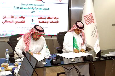 ضمن برنامج تحقيق رؤية مركز الملك سلمان لأبحاث الإعاقة، والتي تتوافق مع رؤية 2030 للمملكة، وانطلاقًا من رسالة وأهداف المركز لتحقيق استراتيجيته البحثية، وفي إطار تعزيز التعاون المشترك مع الجهات البحثية والعلمية ذات العلاقة؛ وقّع المركز مذكرة تفاهم في مجال البحوث العلمية والأنشطة التوعوية مع برنامج الأمان الأسري الوطني.