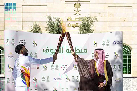 جاء ذلك عقب تسلم سموه اليوم، شعلة دورة الألعاب السعودية 2024، من لاعب ألعاب القوى يوسف مسرحي صاحب ذهبية سباق 400 متر في أسياد 2023، والتي استلمها من "ابتسام العنزي" من أوائل المؤسسين للجمعيات الرياضية بالمملكة، وهي عضو اللجنة النسائية بالاتحاد السعودي لكرة اليد للمناطق الشمالية، وحاصلة على جائزة التميز للشباب العربي من مجلس وزراء الشباب والرياضة العرب.