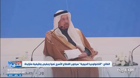 كشف وزير الاستثمار خالد الفالح في ملتقى الاستثمار البلدي "فرص" الذي يقام في العاصمة الرياض أن قطاع التقنية الحيوية سيصبح أكثر القطاعات نموًا خلال العقود القادمة، وسيولّد الكثير من الوظائف، وبالذات لو نظرنا إلى السنوات العشر الماضية، فهناك بلاد كدولة سويسرا على سبيل المثال تشكل ثلث النمو في التقنية الحوية بواقع 6٪ من الناتج المحلي عبر صناعات متطورة وحيوية.