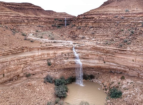 وتدفقت شلالات "الحذيانة" بفعل الأمطار الديمية، مُشكِّلةً لوحات فنية ومناظر جمالية ساحرة، أسرت القلوب، واستهوت المتنزهين ومحبي البر .