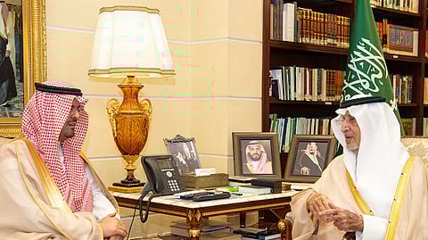 استقبل مستشار خادم الحرمين الشريفين أمير منطقة مكة المكرمة الأمير خالد الفيصل في منزل سموه بجدة، مساء اليوم الأمير سعود بن مشعل بن عبدالعزيز نائب أمير منطقة مكة المكرمة.