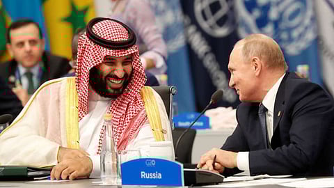 جاء ذلك خلال اللقاء التلفزيوني مع قناة "العربية" في منتجع "سوتشي"؛ إذ توجه الزميل محمد الطميحي بالسؤال للرئيس الروسي حول حديثه الإيجابي أكثر من مرة عن ولي العهد السعودي الأمير محمد بن سلمان، والتقارب الشخصي بينه وبين ولي العهد السعودي، ومدى الرهان على الدور الذي يقوم به الأمير محمد بن سلمان في تعزيز العلاقات بين البلدين، ومستقبل المنطقة. وأجاب الرئيس "بوتين" بالقول: "إن الأمير محمد بن سلمان يلعب دورًا مهمًّا، وهو الآن ينفذ هذا الدور بشكل ناجح تمامًا. نعم بالفعل، لدينا معه علاقات شخصية ودية جدًّا؛ فهو المبادر في الكثير من مشاريعنا، وهذه المبادرات قائمة، وتُنفَّذ، وتتطور باستمرار. وقد قلت ذلك من قبل. إن (أوبك بلاس) هي مبادرته للتعامل معنا في هذا السياق؛ فهو مَن دعم إنشاء منصة لصندوق استثماراتنا، وأسهم بنفسه باستثمار مليارَيْن فيه".