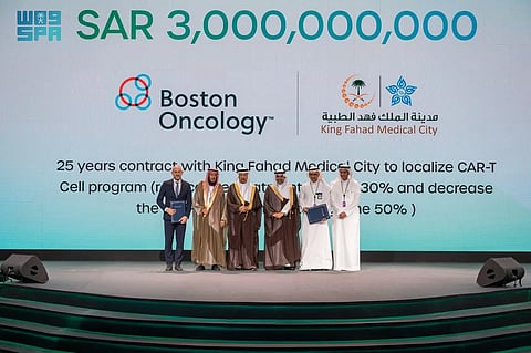 أعلنت وزارة الصحة عن توقيع اتفاقية بين مدينة الملك فهد الطبية وشركة بوسطن أونكولوجي لتصنيع العلاج المناعي بالخلايا التائية المبرمجة، وذلك على هامش ملتقى الصحة العالمي بنسخته السابعة المقام في مركز الرياض للمعارض والمؤتمرات في ملهم.