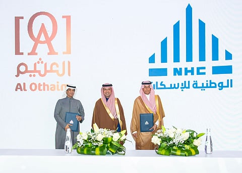وقّع مذكرة التفاهم محمد بن صالح البطي الرئيس التنفيذي للشركة الوطنية للإسكان، ومشعل بن عميره الرئيس التنفيذي لشركة العثيم للاستثمار، في حضور وزير الإسكان ماجد الحقيل، وعبدالله بن صالح العثيم رئيس مجلس إدارة شركة العثيم.