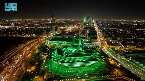ويعد المبنى من أبرز معالم العاصمة الرياض؛ لما يتميّز به من تصميم هندسي جذابٍ ومميّز، ازداد تألقاً بعد اكتسائه اللون الأخضر.