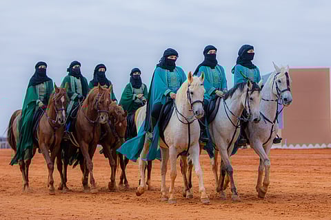 سبَق انطلاقَ شوط الأميرة نورة بنت عبدالرحمن بمهرجان الملك عبدالعزيز للإبل في نسخته السابعة، اليوم السبت، عروض وفعاليات مثّلها سيدات على ظهور الخيل والإبل، استعرضن خلالها بعض الفنون الشعبية.