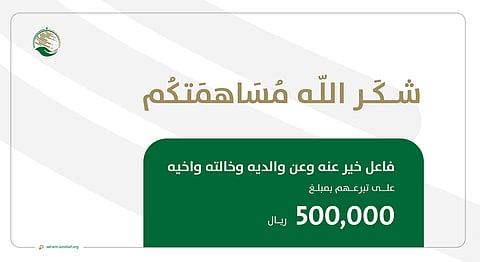 فاعل خير يتبرع لحملة "ساهم" بنصف مليون ريال: "صدقة عن والدي وخالتي وأخي"