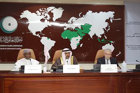 جاء ذلك في كلمة المملكة العربية السعودية، في الاجتماع الاستثنائي للجنة التنفيذية مفتوح العضوية لبحث الاعتداءات الإسرائيلية المتواصلة على المسجد الأقصى المبارك بناءً على طلب وفدي كل من دولة فلسطين والمملكة الأردنية الهاشمية، وبالتنسيق والتشاور مع المملكة العربية السعودية رئيس القمة الإسلامية الحالية ورئيس اللجنة التنفيذية، حيث عقد هذا الاجتماع بحضور المندوبين الدائمين لدى منظمة التعاون الإسلامي في مقر الأمانة العامة لمنظمة التعاون الإسلامي بجدة.