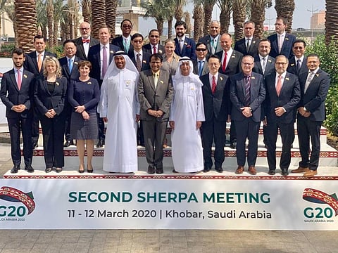 وبعد ستة أيام من تسلم المملكة رئاسة مجموعة العشرين في مطلع ديسمبر (كانون الأول) عام 2019، عقد الممثلون الرسميون لدول مجموعة العشرين "الشيربا" اجتماعهم الأول، وانصب النقاش على بحث الهدف العام لرئاسة السعودية للمجموعة "اغتنام فرص القرن الحادي والعشرين للجميع"، كما ركز على المحاور الثلاثة لبرنامج عمل الرئاسة: "تمكين الإنسان"، و"الحفاظ على كوكب الأرض"، و"تشكيل آفاق جديدة"، فيما تناول اجتماع الشيربا الثاني، الذي عقد في مدينة الخبر في المملكة في 12 مارس (آذار) 2020، على قضايا الصحة، والتجارة والاستثمار، والطاقة، وتغير المناخ، وانتشار فيروس كورونا المستجد.