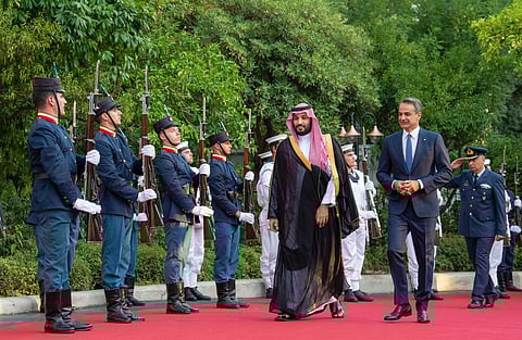 نشرت وكالة الأنباء السعودية "واس" مقطع فيديو للموكب الرسمي لوليّ العهد الأمير محمد بن سلمان، أثناء دخوله إلى محيط قصر ماكسيموس التاريخي مقر الحكومة اليونانية، اليوم "الثلاثاء"؛ حيث كان رئيس الوزراء اليوناني كيرياكوس ميتسوتاكيس في استقبال ولي العهد في مستهلّ زيارته الرسمية إلى اليونان.