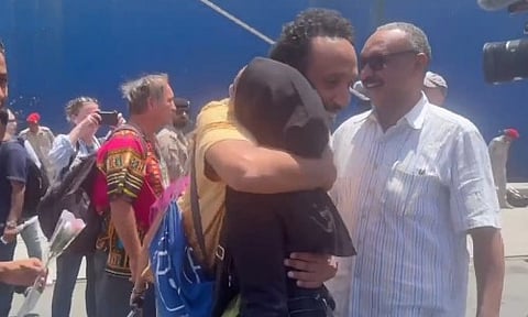 انتابت حالة من السعادة الممزوجة بالدهشة، صحفيًّا سوداني الجنسية، يعمل في شبكة "بي بي سي" البريطانية؛ حينما صادف خاله بشكل مفاجئ على متن سفينة "أمانة"، التي وصلت، اليوم السبت، إلى قاعدة الملك فيصل البحرية في جدة، قادمة من بورتسودان، ضمن عمليات الإجلاء التي تقوم بها المملكة من السودان.