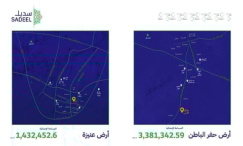 تمتد الأرض الأولى على مساحة 1,432,452.6 متر مربع في قلب حي الإسكان النابض بالحياة في عنيزة، مما يجعلها مثالية لمشاريع سكنية وتجارية واسعة النطاق. أما الأرض الثانية، فتقع على طريق الملك عبد العزيز الحيوي في حفر الباطن، وتمتد على مساحة 3,381,342.59 متر مربع، مما يوفر إمكانيات لا حصر لها للاستثمار في القطاعين السكني والتجاري.