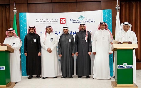وقّعت مجموعة الدكتور سليمان الحبيب الطبية، اتفاقية تعاون مشترك مع جامعة القصيم، يتم بموجبها تدريب وتأهيل طلاب وطالبات مرحلة البكالوريوس والامتياز بمستشفى الدكتور سليمان الحبيب في القصيم، ومساعدتهم على الانخراط في بيئة العمل، عبر منحهم تجربة العمل الميداني والتطبيقي، بالإضافة إلى السعي نحو تطوير الأداء المهني للمتدربين.