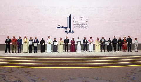 تحت رعاية خادم الحرمين الشريفين الملك سلمان بن عبد العزيز آل سعود -حفظه الله-، نظمت هيئة فنون العمارة والتصميم، مساء أمس، الحفل الختامي لجائزة ميثاق الملك سلمان العمراني في دورتها الأولى، التي تُعد جزءًا من استراتيجية تفعيل مبادرة ميثاق الملك سلمان العمراني، حيث جرى الإعلان عن المشروعات المرشحة في القائمة القصيرة وتتويج المشروعات الفائزة التي تبنت منهجية الميثاق وجسدت قيمه.