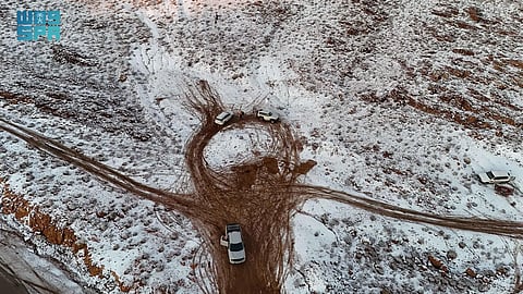 عاودت الثلوج أمس -وللمرة الثانية- خلال شهر فبراير الجاري، تساقطها على جبال اللوز- شمال غرب مدينة تبوك، تزامناً مع الحالة المناخية التي سادها الدفء هذا العام على غير عادة، وأدّت إلى تأخر تساقط الثلوج على "اللوز" لأكثر من شهرين مقارنةً بالعام الماضي 2023م.