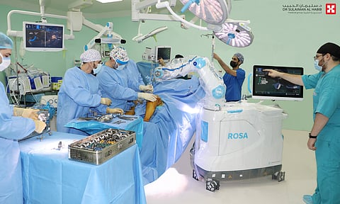 شهد مستشفى الدكتور سليمان الحبيب بالتخصُّصي، عملية متقدمة لاستبدال مفاصل الركبة بتخدير موضعي، وباستخدام تقنية الروبوت "Robotic surgeon"، لامرأة "خمسينية" عانت خشونة متقدّمة في الركبتيْن مع تآكلٍ شديدٍ في الغضروف، نتج عنه كثيرٌ من الأعراض الحادة التي تعايشت معها أعواماً، بسبب خوفها من الإجراء الجراحي.