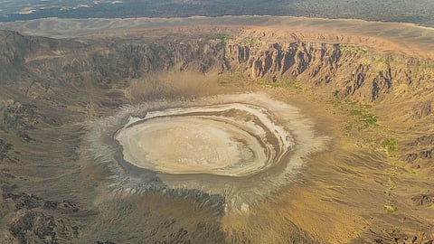 والفوهة نفسها تشكّلت قبل نحو مليون ومائة ألف سنة، وتتميز بعمق يصل إلى نحو 250 متراً وقطر يبلغ 2.3 كيلومتر، وهو ما يقارب ثلاثة أضعاف متوسط أقطار البراكين الأخرى، كما تحتوي على حوض ملحي أو بحيرة ضحلة تشكّلت بسبب تجمُّع مياه الأمطار.