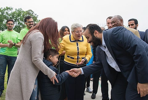 والتقى سمو ولي العهد خلال الزيارة عمدة هيوستن سيلفستر تيرنر ، والمديرة التنفيذية لمنظمة habitat for humanity أليسون هاي، اللذين رحبا بسمو ولي العهد، معبرين عن التقدير للدعم المقدم من أبناء المملكة العربية السعودية لمدينة هيوستن عقب إعصار هارفي.