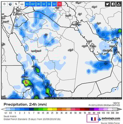 وقال عبر حسابه في "تويتر": اليوم 5 للحالة المطرية 1، ومتوقع أن تؤثر بسحبها وربما أمطارها على أجزاء متفرقة من الجزء الشمالي الغربي من #السعودية، وربما بعض المناطق الشمالية.