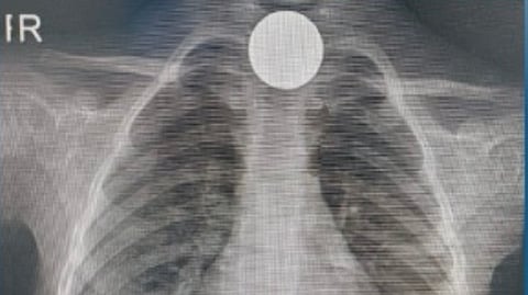 وأظهرت الفحوصات الطبية أن الجسم الغريب عبارة عن عملة معدنية من فئة الريالين، وكانت مستقرة في القسم العلوي من المريء.