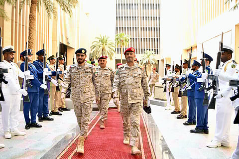 وشهد الاستقبال استعراض الموقف العام وسير العمليات العسكرية الجارية في اليمن.