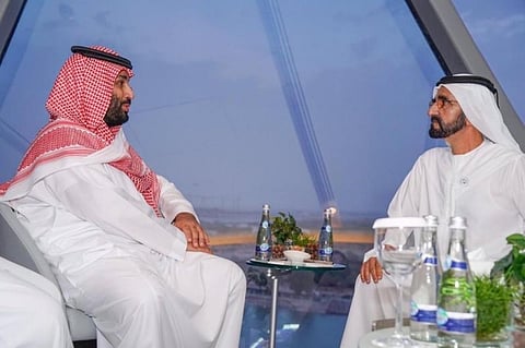 التقى صاحب السمو الملكي الأمير محمد بن سلمان بن عبدالعزيز ولي العهد نائب رئيس مجلس الوزراء وزير الدفاع، اليوم، نائب رئيس دولة الإمارات العربية المتحدة رئيس مجلس الوزراء حاكم دبي الشيخ محمد بن راشد آل مكتوم.