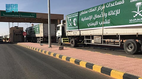 عبرت 22 شاحنة إغاثية مقدمة من مركز الملك سلمان للإغاثة والأعمال الإنسانية خلال الفترة من 10 حتى 16 نوفمبر 2021م، منفذ الوديعة الحدودي، تحمل على متنها 1.000 خيمة، و1.750 حقيبة إيوائية، و7.060 كرتون تمر متوجهة لمحافظات: عدن، مأرب الجوف، المهرة، حضرموت.