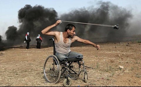 وبرغم سقوط أكثر من ٢0٠٠، ما بين شهيد وجريح في الاحتجاجات الفلسطينية بغزة المحاصرة؛ فإن قصة استشهاد الشاب المُقعد "أبو صلاح" سجّلت حضوراً إعلامياً، وتداوَلَ نشطاءٌ صورَه وهو يقاتل على كرسيه المتحرك؛ سلاحُه العزيمة والإقدام في ساحات الوغى والدفاع عن الكرامة.