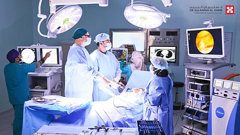 شهد مستشفى الدكتور سليمان الحبيب بالخُبر إجراء عملية معقدة، ونادرة جدًّا، لمراجِعة "خمسينية"؛ لاستئصال كامل للقنوات المرارية - الصفراوية الجامعة بالمنظار، مع توصيل الأمعاء الدقيقة بالقنوات الصفراوية، دون شق جراحي.