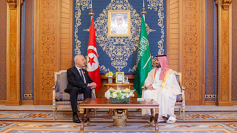 التقى صاحب السمو الملكي الأمير محمد بن سلمان بن عبدالعزيز آل سعود، ولي العهد رئيس مجلس الوزراء، اليوم الجمعة، فخامة الرئيس قيس سعيِّد رئيس الجمهورية التونسية.
