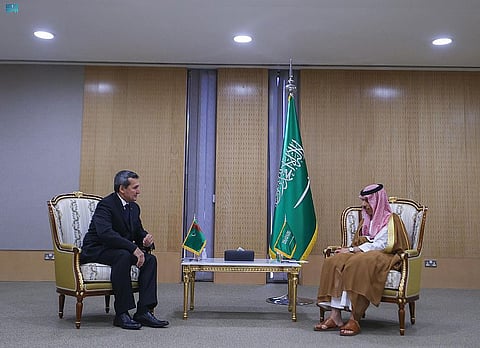 التقى الأمير فيصل بن فرحان بن عبدالله وزير الخارجية، في مقر الأمانة العامة لدول مجلس التعاون الخليجي بالرياض، نائب رئيس مجلس الوزراء وزير خارجية تركمانستان رشيد ميريدوف، على هامش أعمال الاجتماع الوزاري المشترك للحوار الاستراتيجي بين مجلس التعاون لدول الخليج العربية ودول آسيا الوسطى، المنعقد في الرياض اليوم.