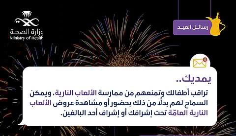 وقالت "عش بصحة": يجب أن تراقب أطفالك وتمنعهم من ممارسة الألعاب النارية، ويمكن السماح لهم بدلاً من ذلك بحضور أو مشاهدة عروض الألعاب النارية العامة تحت إشرافك أو إشراف أحد البالغين.