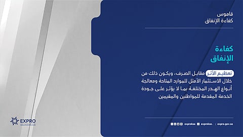 أوضحت هيئة كفاءة الإنفاق والمشروعات الحكومية، أن كفاءة الإنفاق تُعنى بتعظيم الأثر مقابل الصرف، من خلال الاستثمار الأمثل للموارد المتاحة ومعالجة أنواع الهدر المختلفة؛ بما لا يؤثر على جودة الخدمة المقدمة للمواطنين والمقيمين.