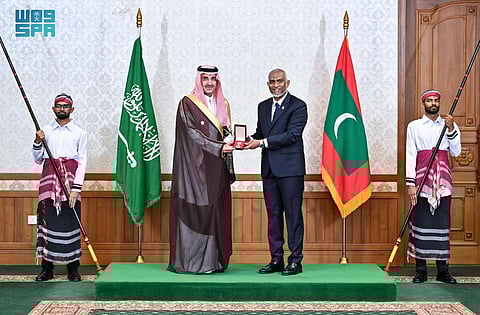 منح الرئيس الدكتور محمد معز رئيس جمهورية المالديف؛ وسام "الحكم النبيل موليجي" للرئيس التنفيذي للصندوق السعودي للتنمية سلطان بن عبدالرحمن المرشد؛ نظير ما قدمته المملكة العربية السعودية من دعم تنموي للمالديف من خلال الصندوق السعودي للتنمية في مختلف المجالات والقطاعات الإنمائية لأكثر من 47 عامًا، بحضور نائب رئيس الجمهورية السيد حسين محمد لطيف، ووزير المالية والتخطيط في المالديف السيد موسى زامير، ونائب سفير خادم الحرمين الشريفين لدى المالديف فهد الدوسري، وعددٍ من المسؤولين من الجانبين.