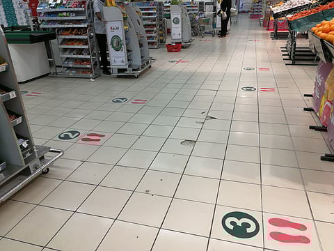 وأكد "الجبير" ضرورة ترك مسافة لا تقل عن متر واحد بين المتسوقين عند عملية الدفع النقدي وأثناء التسوق، وذلك من خلال تحديد علامات إرشادية أرضية لوقوف المتسوقين باللغتين العربية والإنجليزية، بالإضافة للتشجيع على التسوق الإلكتروني وخدمات التوصيل للمنازل من خلال التطبيقات الإلكترونية المعتمدة؛ بهدف الحصول على تجربة تسوق آمنة تحافظ على صحة المتسوقين وسلامة أفراد الأسرة.