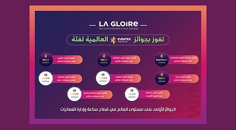 وقد فازت شركة زهرة المجد لإدارة وتنظيم الفعاليات "La Gloire" بهذه الجوائز من بين أكثر من 1200 متقدم للجائزة من 65 دولة حول العالم عن العديد من الفعاليات والمعارض التي قاموا بتنفيذها والعمل عليها.